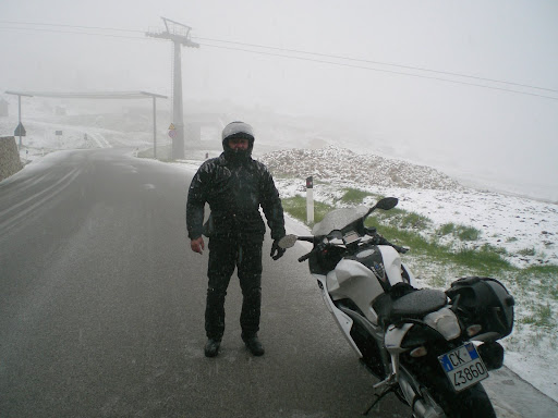 Ricordo che allo Stelvio c'era una bufera di neve e la strada era completamente innevata!