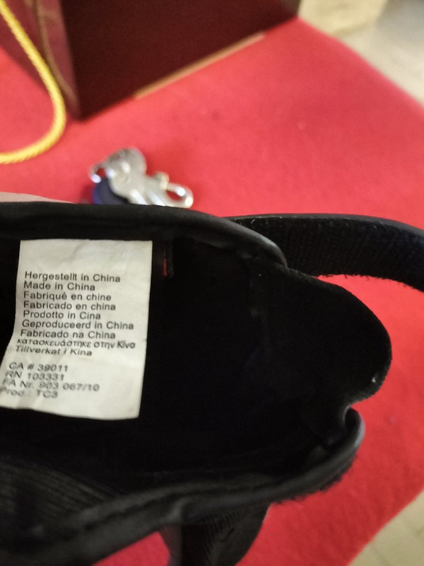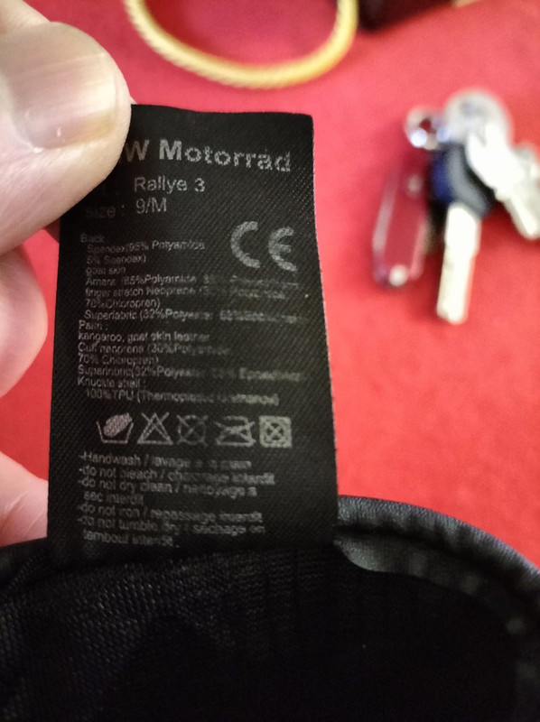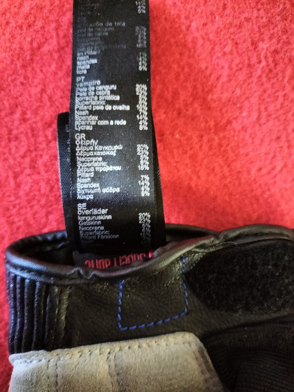 Arrivati i guanti. L'etichetta mi fa sperare che fossero prodotti per il committente tedesco.