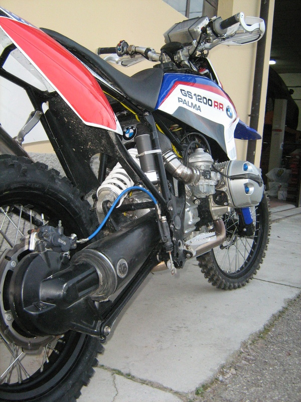 Bing al posto degli iniettori originali, Cardano sembra quello che usano sulle HPN -direi un mix-, telaio e soprattutto anteriore con forche normali (come dice matteo), serbatoio, airbox, scarico tutto cambiato/modificato.. decisamente un lavorone.