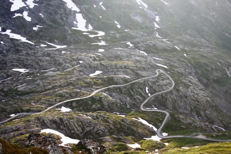 sono partito alle 15:15 da Bergen direzione Trondheim via fiordi e passando dal passo del Troll sulla ss 63, strade bellissime con asfalto buono ma che purtroppo tiene l'acqua, quasi tutto il giorno sotto la pioggia !!!