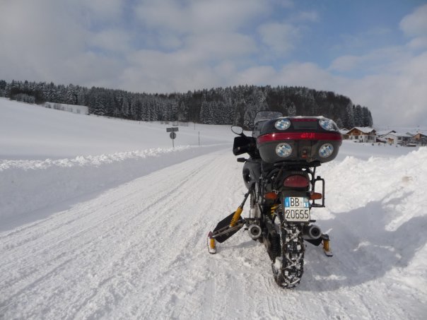 Per farci perdonare propongo una colletta per regalare al nostro amico yamakista inglese il kit di sci per la moto.