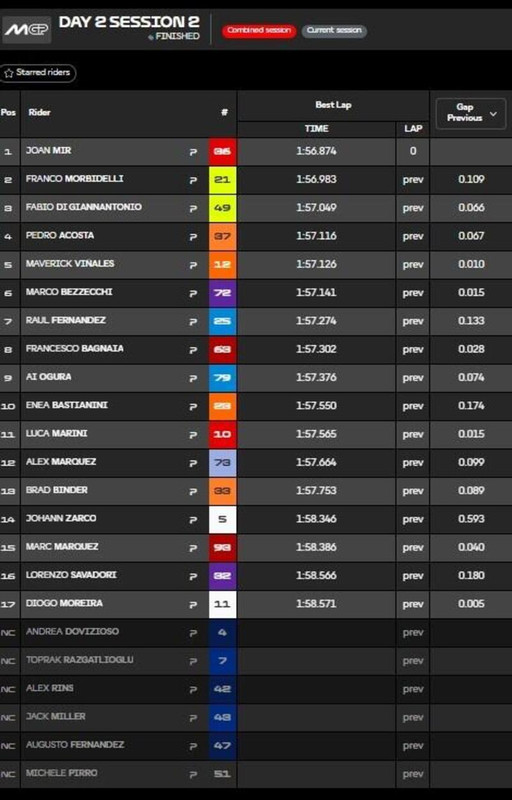 MotoGP - Test Sepang Day2 - I tempi della seconda giornata