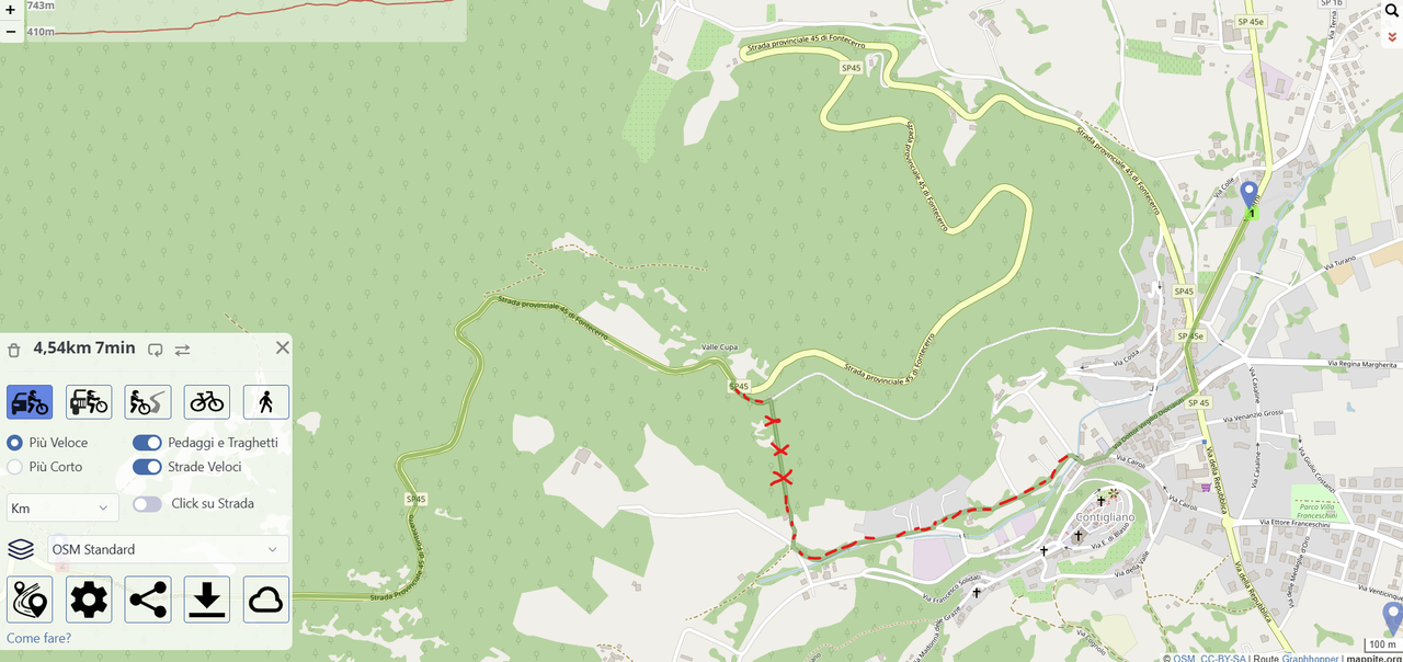 Ma mi domando perchè se imposto su mappite la modalità "curve" il percorso è quello su asfalto (SP45 su seconda immagine)?