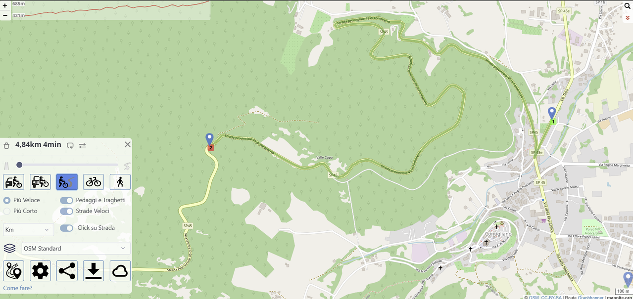 Domenica ho utilizzato una traccia fatta con mappite (nelle immagini è indicata solo una parte del percorso) di cui la prima è quella utilizzata e riportata esattamente su Osmand, la modalità è auto o moto.