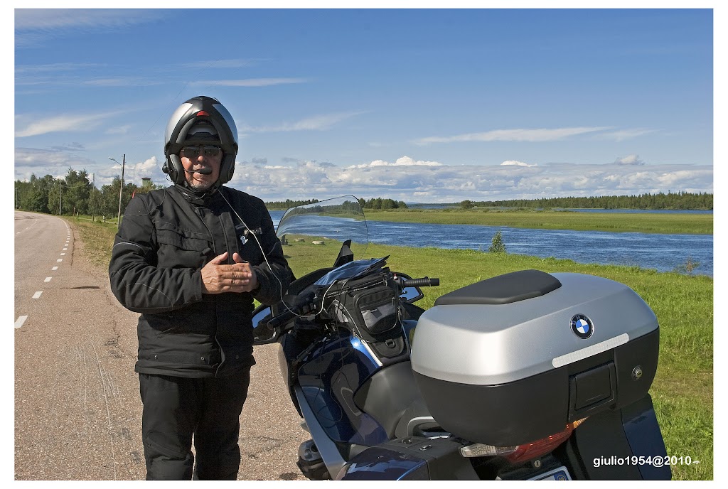 Alle 3.30 il cielo è sereno, tranne poche nubi rossastre ad est illuminate dal sole nascente. Tre ore dopo, invece, è coperto e mi crea un po’ di inquietudine il ricordo dei racconti di chi è già stato quassù sulla pioggia e sul vento che si incontrano da qui in avanti. Alle sette siamo in marcia e proseguiamo ancora per una quarantina di chilometri sulla E4 fino a Tore, dove lasciamo la costa baltica per immetterci nella E10. La strada costeggia un largo fiume in cui si specchiano basse colline coperte di nere conifere. A Överkalix deviamo a destra prima sulla 98 e subito dopo sulla 392 che ci condurrà a Pajala. Dopo una ventina di chilometri incrociamo il circolo polare artico; sulla sinistra della strada, un paio di costruzioni chiuse e un piccolo mappamondo arrugginito segnano il luogo, ma il ristoro è chiuso forse da anni e l’area ha un aspetto desolato e triste per cui, scattata una foto, ci affrettiamo ad allontanarci. La strada si alza e procede sulle dolci ondulazioni punteggiate di specchi d’acqua azzurro brillante ora che il sole ha dissolto le nubi; quando ridiscende nella valle, il primo incontro con un paio di renne che brucano, fuggevoli apparizioni nella cunetta al lato della strada. Pajala è una tranquilla cittadina di campagna e ci accoglie con una pasticceria che sembra il salottino di casa della signora che la gestisce. La torta al limone che prendo è stupenda, come pure le altre a cui rinuncio. Ci sentiamo ormai arrivati anche se mancano ancora trecentosessanta chilometri a Kautokeino, ma invece il bello comincia adesso. La 395 segue per una cinquantina di chilometri il fiume Torne con bellissime vedute sulle sue anse, gli isolotti, le rapide spumeggianti e poi lo abbandona, perdendosi nella campagna abbastanza desolata verso Vittangi. La strada è stretta, ma incrociamo solo qualche camion, poche auto e numerosi cantieri per il rifacimento della strada. Allora, tutto il traffico scorre su una sola corsia di terra battuta, ma il fondo è compatto e non ci crea difficoltà. È l’una passata e, giunti a Vittangi, cerchiamo un posto in cui fermarci a mangiare qualcosa, ma troviamo solo un fast food un po’ dubbio in cui comunque la pizza è commestibile. Riprendiamo la E45 verso Karesuando, ma presto la strada diventa un incubo per una quindicina di chilometri. L’asfalto è stato completamente smantellato e tutta la sede stradale è ricoperta di ghiaione smosso e profondo; l’anteriore affonda, il manubrio è come impazzito ed il posteriore scodinzola che è un “piacere”. Inevitabilmente, andiamo piano e cerchiamo davanti a noi i tratti che ci sembrano più solidi, utilizzando l’intera larghezza della strada. Tuttavia, non è cosa semplice perché in entrambe le direzioni corrono mezzi pesanti ed auto con roulotte cui dobbiamo cedere il passo, affondando in pozze di ghiaia profonda. Verso la fine del tratto, incrociamo un motociclista tedesco con una sportiva che fatica ancora più di noi e che, quando gli diciamo che ne avrà per una decina di chilometri, sbianca. Un rapido “good luck” e via. Infine, la strada torna ad essere tale e non una pista e rapidamente arriviamo a Karesuando e al confine con la Finlandia. Pochi chilometri ancora e siamo in Norvegia. L’emozione è tanta; i boschetti diventano sempre più bassi e radi e mano a mano sono sostituiti da una distesa di bassa vegetazione, la tundra, punteggiata di cuscini di fiori rossi e di specchi d’acqua azzurri. L’orizzonte è rotto da alcuni rilievi e dai coni delle tende Sami che accompagnano ogni abitazione. Infine, eccoci a Kautokeino che si estende in lungo e in largo e ci fa pensare che i Sami siano così abituati agli ampi spazi da edificare città che assomigliano anch’esse ad accampamenti. Scendiamo al Norlandia Kautokeino Hotel al cui ingresso ci accolgono quattro pelli di renna in vendita. È evidente che non si aspettano più clienti e ovunque tracce di lavori di manutenzione in corso. Sistemati i bagagli, ci piacerebbe fare una passeggiata prima di cena, ma, appena usciti, siamo assaliti dai terribili mosquitos lapponi che non ci danno tregua. Sconfitti, battiamo in ritirata in una steak house che prometteva bene secondo la Lonely Planet, ma ahinoi deve essere cambiata la gestione: la birra Mack’s non c’è più, il cameriere rimane fisso davanti alla TV nonostante il nostro ingresso e la qualità della bistecca lascia alquanto a desiderare. Pazienza.