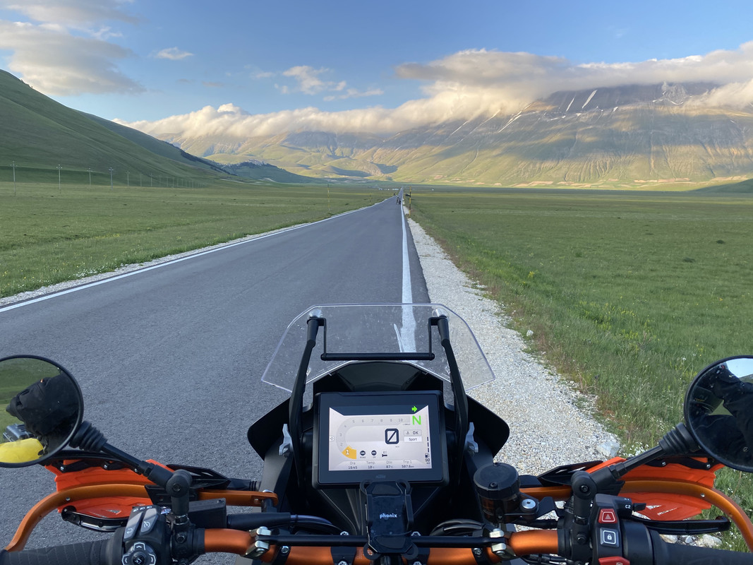 A distanza di qualche settimana dalla prova della Pan oggi è toccato al kappa 1290 s . Sella regolata bassa , il tipo mi ha detto che era una rottura alzarla , manubrio piuttosto vicino (rispetto al supertenerè 1200) ,sensazione di essere un pò incastrati e di moto piccola. Partito in street , moto agile ,più del Pan , progressiva ed intuitiva , motore che sviluppa salendo di giri ,con un sound che non ti prende . Provata in comfort si sentiva la catena (almeno credo fosse lei) che sbatacchiava nelle buche stradali , in sport invece zero colpi ,bella sostenuta e precisa ,la mappatura che più mi è piaciuta . Belli e intuitivi i comandi ed il quadro. Nella guida impegnata come spostavo i piedi sbattevo col tallone dx contro la pedanina passeggero , sensazione di calore per me fastidiosa agli stinchi ( forse ci vuole il parastinco  ) sia andando piano che viaggiando .
