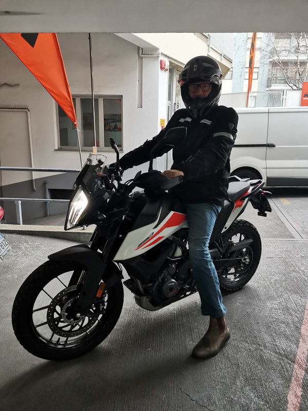 Questo pomeriggio mi si è prospettato uno slot di circa un'oretta e quindi mi sono fiondato in KTM per provare la posizione della ADV390. Fortuna vuole che ce n'era anche una disponibile per una prova