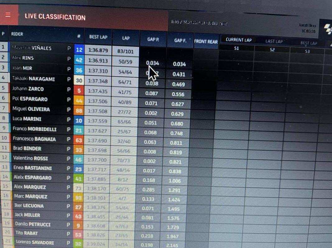Vinales chiude col migllior tempo e la bellezza di 101 giri percorsi, si è chiaramente dovuto accollare tutto il lavoro vista l'assenza di Quartararo. Piccolo passo avanti per Rossi mentre Marquez come aveva anticipato ieri ha percorso solo una manciata di tornate. Marc ha comunque testato una nuova aerodinamica e aggiornamenti di elettronica.