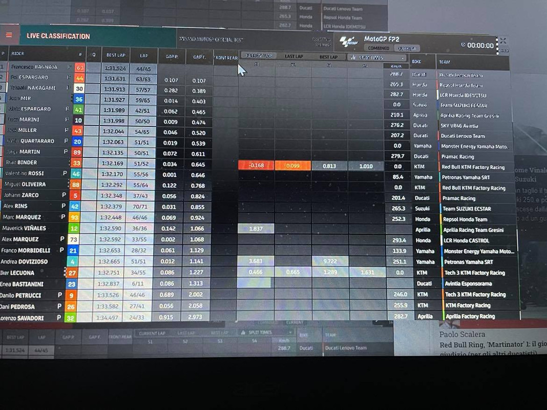 Quartararo è sceso a 1.31.959, se girano già così for te a quest'ora credo oggi si vedranno dei temponi. Seguono Oliveira, Aleix e Pol Espargaro, Nakagami e Vinales.