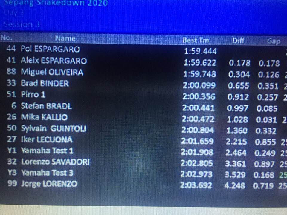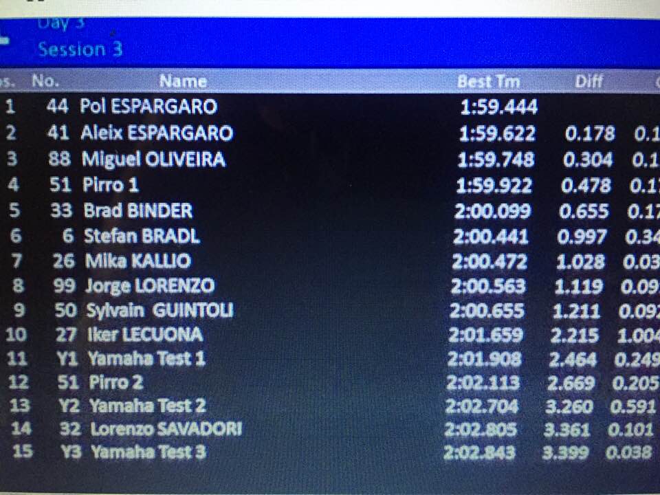 Conclusa la tre giorni di test, il miglior tempo resta a Pol Espargaro ma continua la arcia di avvicinamento di Lorenzo che chiude con 2.00.5.