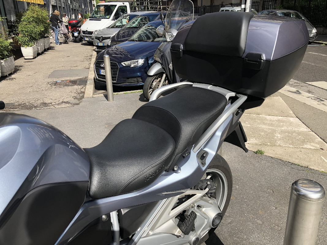 Arrivato anche schienalino del Top case che ho fatto rifare più imbottito e con tessuto dello stesso tipo delle selle. Per sostituirlo ho dovuto solo smontare i supporti dalle viti da quello originale e metterli sulla scocca di quello che mi hanno spedito. Anche in questo caso restituirò lo schienalino originale per non avere sovrapprezzo.