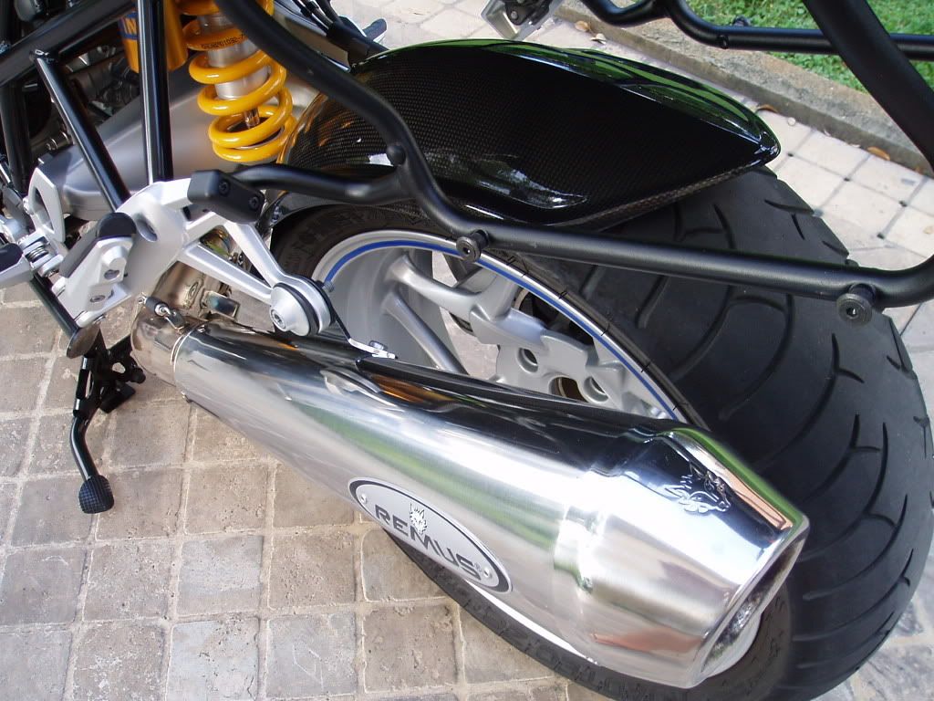 Ohlins davanti e dietro, Remus powercone, parafango posteriore in carbonio, minuterie in ergal blu...