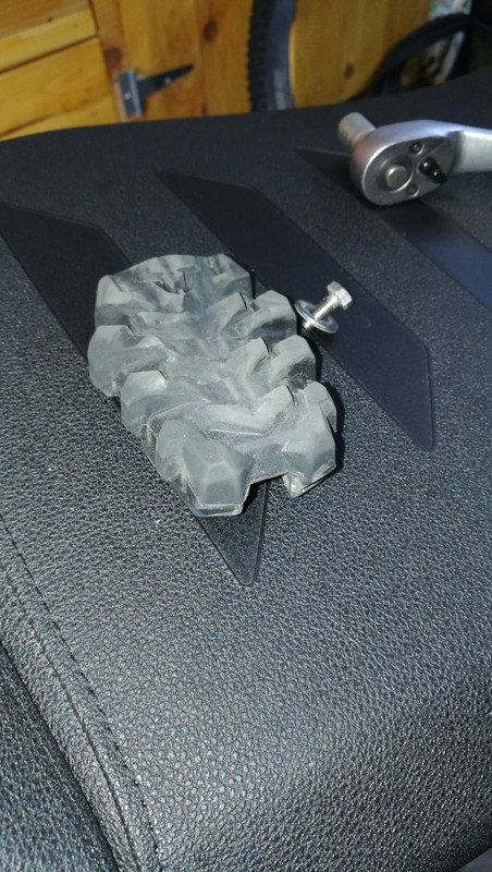 la gomma si può togliere con il doppio vantaggio di avere maggiore aderenza sullo stivale e abbassare di ulteriori 5 mm la pedana
