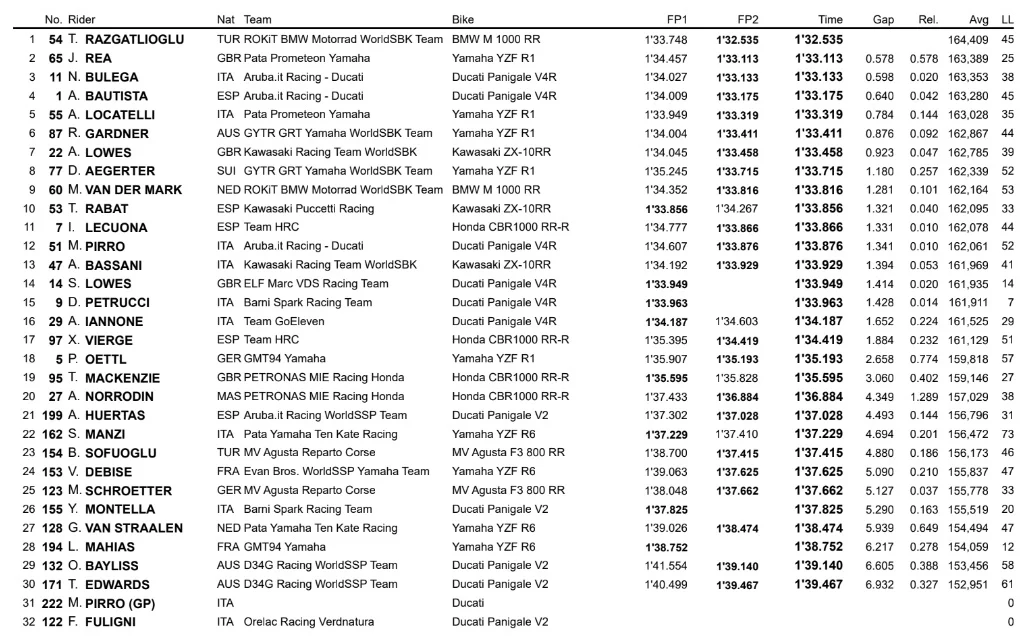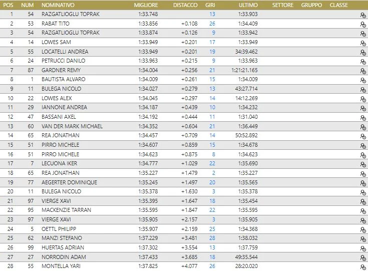 WSBK - Test Cremona Day2 - I tempi alle 13.00