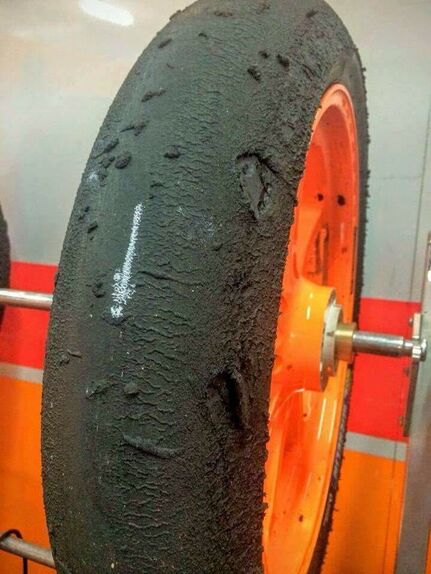 A proposito di gomme "fallate" ... foto della gomma anteriore di Pedrosa a fine gara: