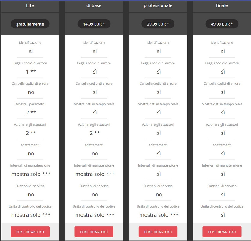 In ogni caso tu stesso hai dichiarato che ti servirebbe solo per azzerare il service e cancellare i codici errore: ergo, sai già che la versione di minor costo fa ciò che serve a te. Per il resto ti confermo che la versione Ultimate NON FA ciò che promette.
