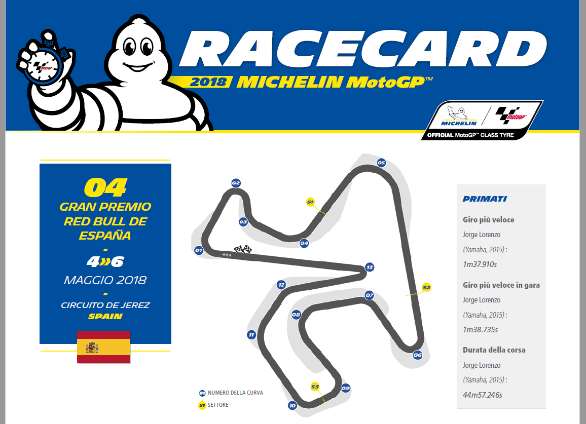 SCARICA IL PDF RACE CARD MICHELIN JEREZ 2018